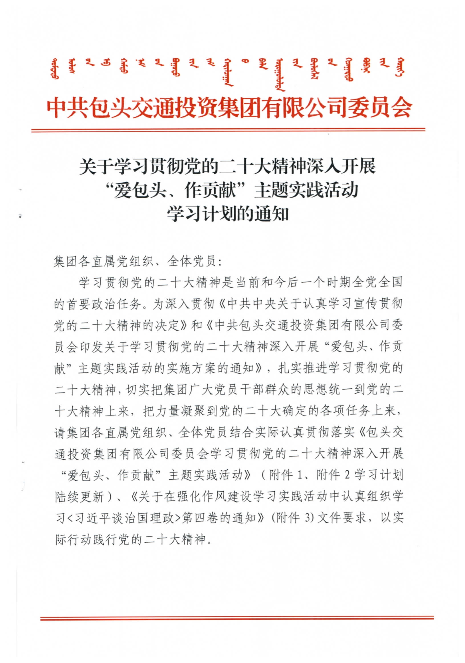 关于学习贯彻党的二十大精神深人开展“爱包头、作贡献”主题实践活动学习计划的通知